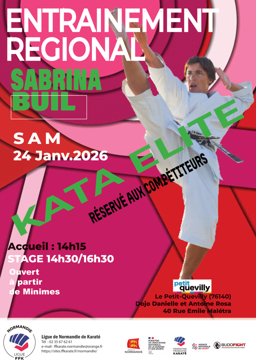 Stage régional de karaté kata, dirigé par Sabrina Buil, quintuple Championne du Monde.