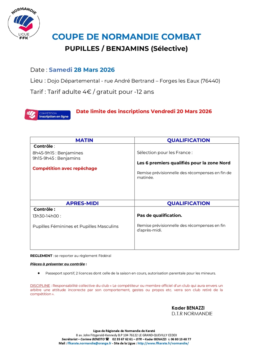 Programme Coupe de Normandie de Karaté Pupilles/Benjamins